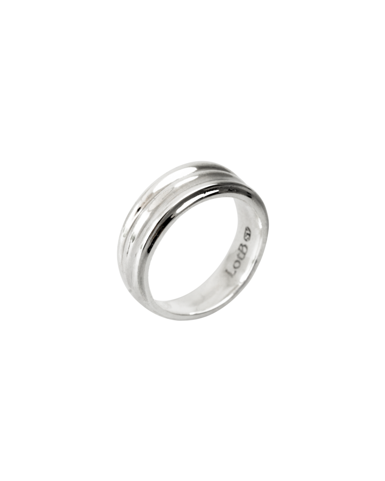 반지를 바라보는 방향에 따라 각기 다른 형태를 보여주는 적당한 두께감을 지닌 디자인의 반지입니다. 빛나는 실버의 표면과 유려한 곡선감의 조화가 아름다운 반지입니다. 미니멀하면서도 절제된 곡선으로 진중함을 담아, 사랑하는 이와 나누어 착용하는 모습을 그리며 뮤즈라는 이름을 붙였습니다. 반지의 안 쪽에 브랜드 로고를 새겨넣었으며 정은으로 제작됩니다.