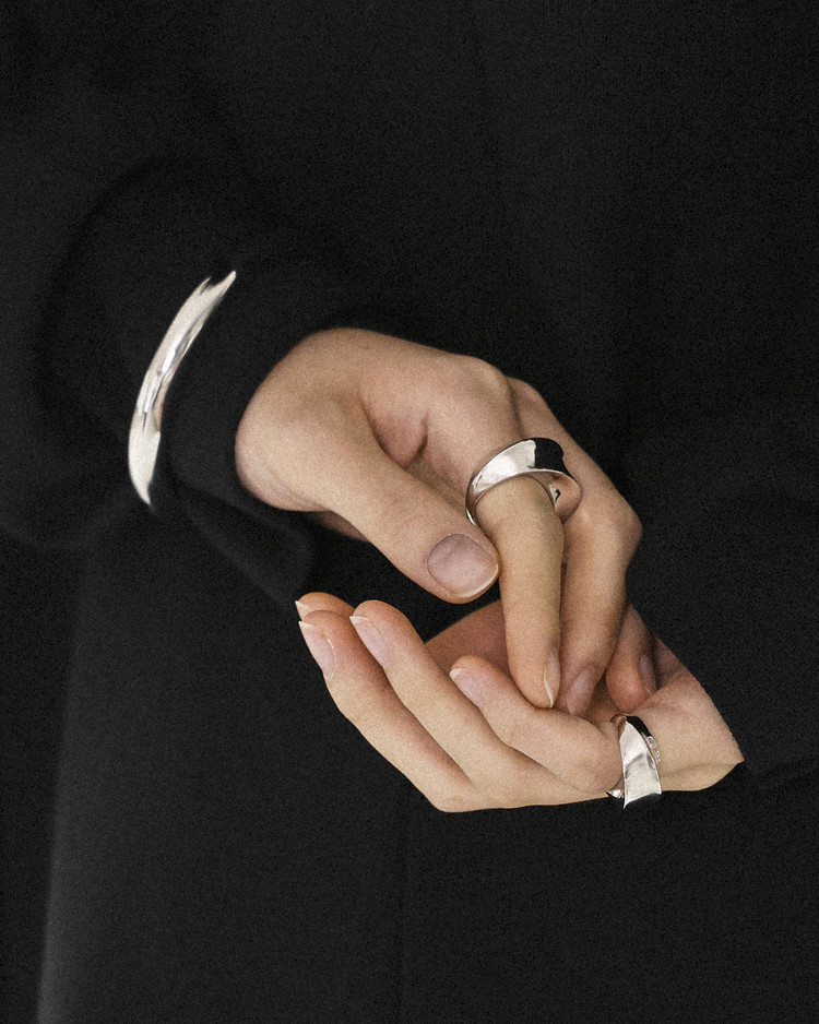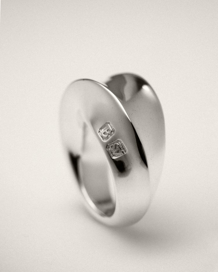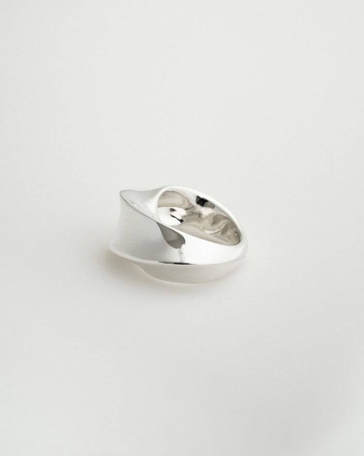 현대적인 우아함의 미학. 대담하면서도 세련된 곡선의 대비를 통한 우리만의 클래식을 고심했습니다. 곡선을 따라 흐르는 볼륨의 변화가 돋보이는 디자인으로 실버의 재료적 특성을 살려 표면에 비치는 빛의 곡률이 아름답게 드러나는 반지입니다. 유독 볼드하게 제작된 L 사이즈의 경우, 하나의 착용으로도 충분한 존재감을 드러내며 담대한 아름다움을 보여줍니다. 부쉬의 문양을 도장으로 새겨넣었으며 모든 부분 정은으로 제작됩니다. 두께감에 따라 S/M/L 세 가지 타입으로 제작되어, 나의 시선과 상황에 맞게 고심하여 연출 할 수 있습니다.