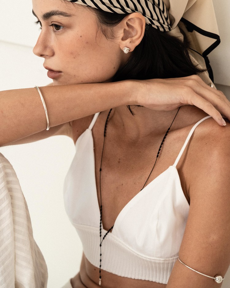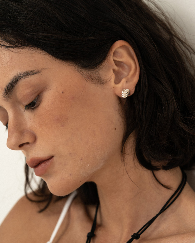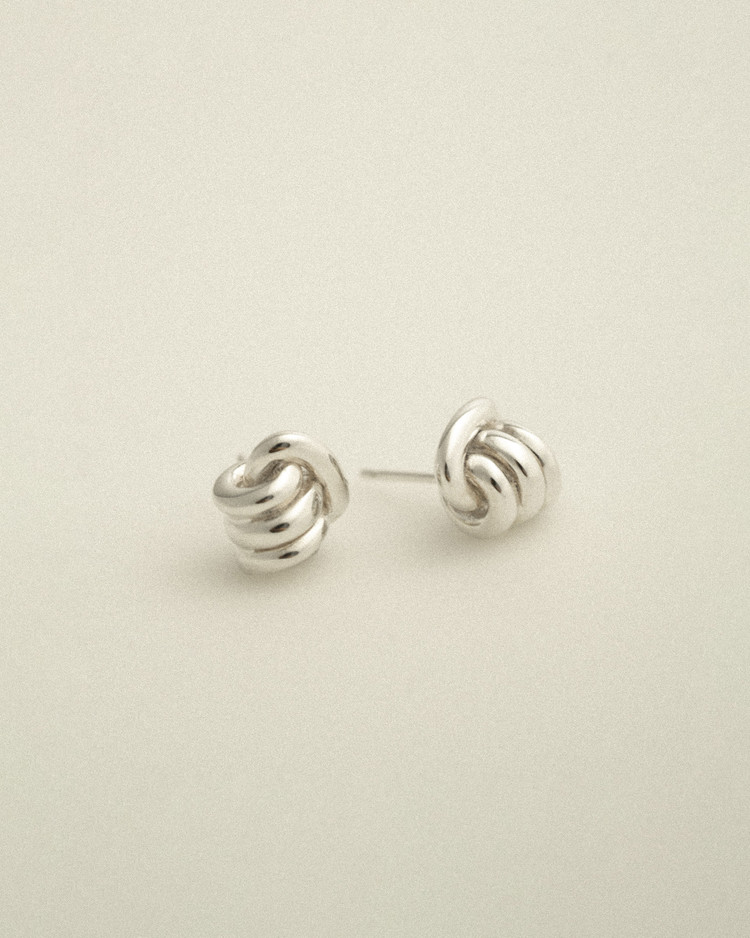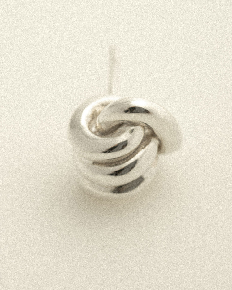 유연함과 유동적인 라인감을 살려 매듭을 지어내는 모습을 그대로 살려낸 이번 시즌 아이코닉한 디자인으로 귓볼에 딱 달라붙게 착용되어 은은히 실버의 색감을 반영하는 아름다운 이어링입니다. 부쉬의 문양을 도장으로 새겨넣었으며 모든 부분 정은으로 제작됩니다.