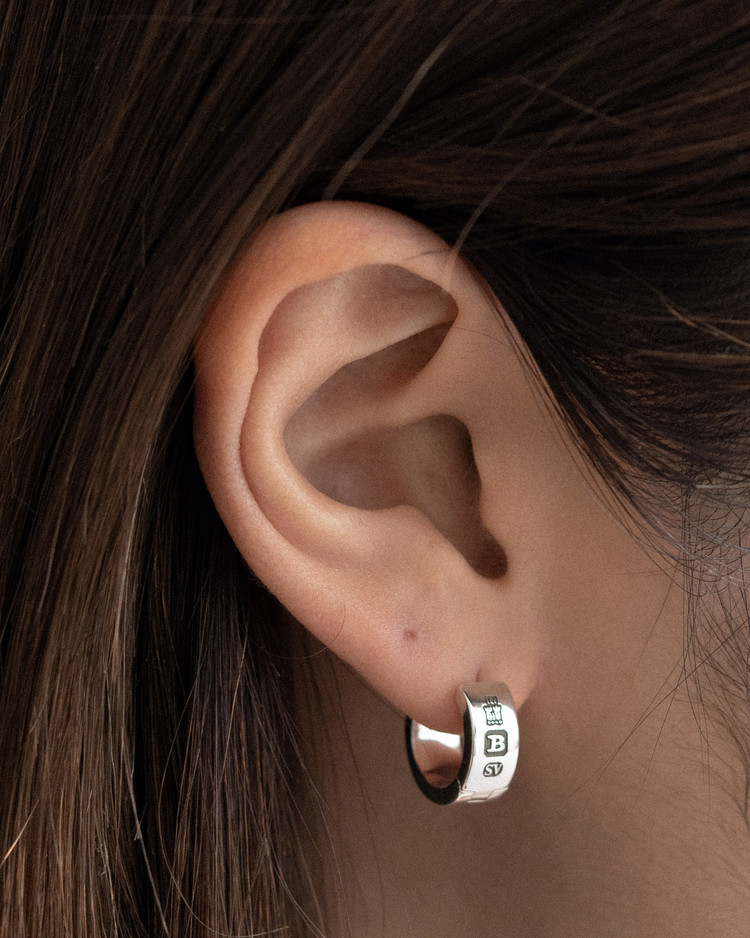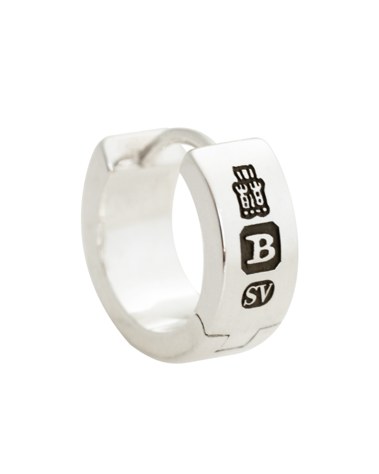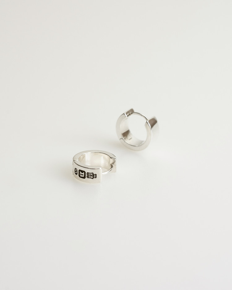 빛나는 실버의 플랫한 표면에 부쉬의 시그니처 문양들을 새겨넣은 베이직한 원터치 이어링입니다. 앞 면은 문양이 없는 실버 폴리싱, 뒷 면은 로고 문양이 새겨져있어 앞 뒤로 바꾸어 2 WAY 로 착용할 수 있습니다. 크기에 따라 SMALL/LARGE 두 가지 타입으로 제작되어, 나의 시선과 상황에 맞게 고심하여 연출 할 수 있습니다.