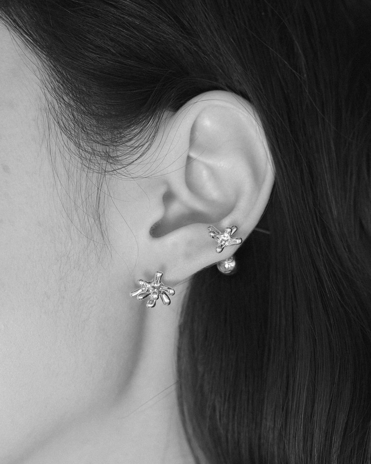풀, 잔디, 이끼, 잎, 줄기, 가지 나아가 볕. 그리고 숲. 주관적으로 해석되는 숲의 모습을 모티프로 정은을 소재로 제작된 이어링입니다. 잔가지 혹은 줄기들이 서로 다른 길이감과 방향성을 지닌 이 형상은 한 쌍의 이어링으로 제작되었습니다. 러프하고 투박하면서도, 실버가 가진 은은한 반짝임을 토대로 유려한 미감을 전달합니다. 주문일로부터 주말 및 휴일을 제외한 2-7일 의 기본 제작 기간이 소요됩니다.