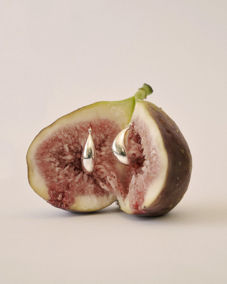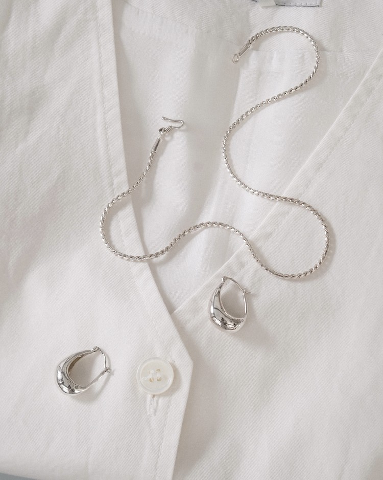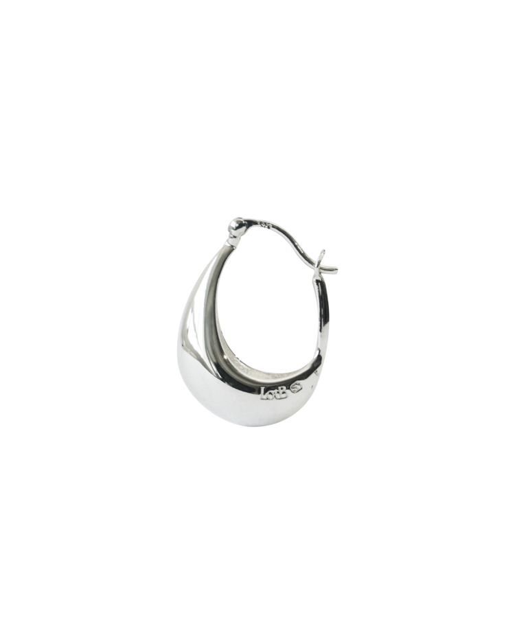우아하게 늘어지듯 풍성한 볼륨감을 지닌 원터치 형식의 이어링. 형태의 속을 비워 볼륨감을 살리면서도 가벼운 착용감. 우아하고 고급스러우면서도 하나의 착용만으로도 존재감을 드러냄. 옆면에 브랜드 로고가 새겨져 있으며, 정은(스털링 실버)로 제작.