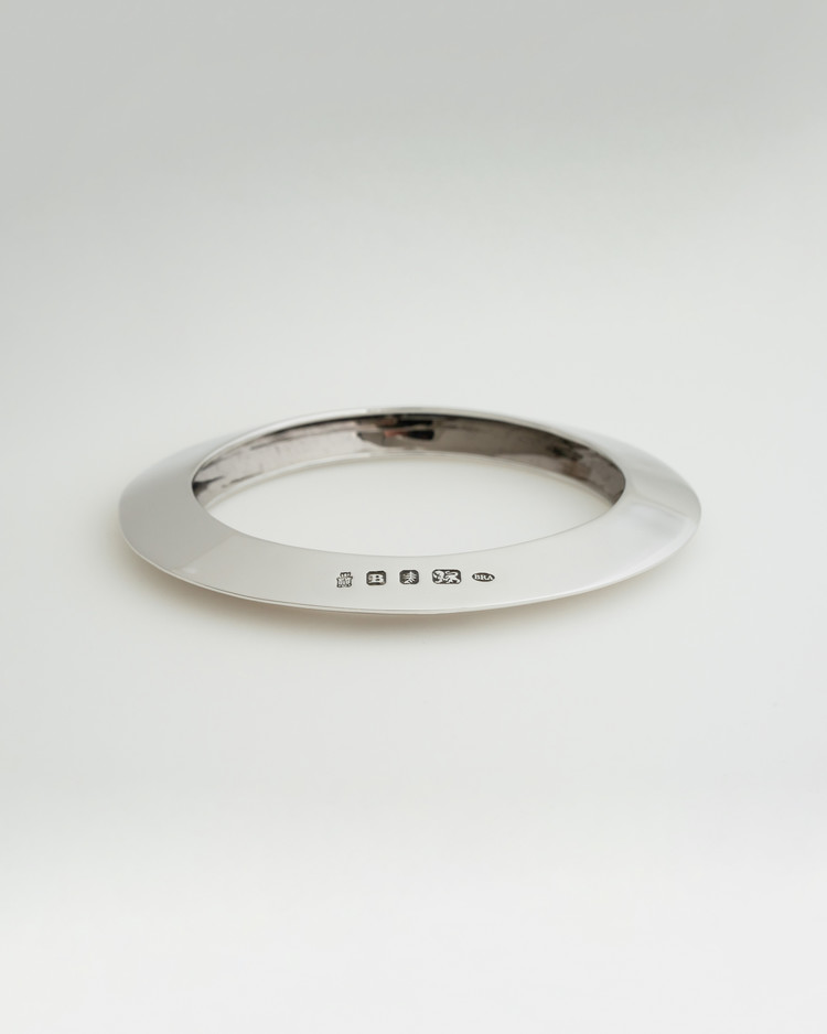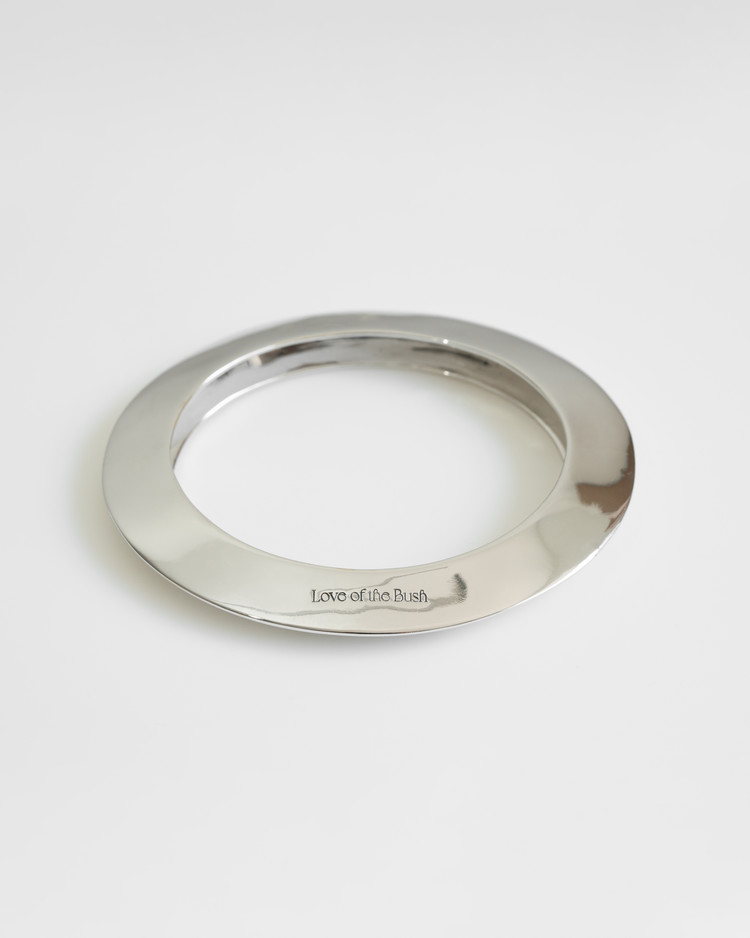 디스크 형태의 샤프한 앵글의 뱅글로 손목의 쉐입에 맞게 타원형의 오발로 부드럽게 디자인되었습니다. 날카로우면서도 부드럽고 유려하게 떨어지는 플랫한 형태와 마주하는 실버의 반짝이는 표면은 더욱 아름다움을 연출합니다. 무게감을 고려하여 적당한 이너 곡률로 속을 비워냈으며 과하지 않은 편안한 착용감을 지닙니다. 실버의 매력과 어우러지는 셔츠 혹은 자켓과의 매치는 세련되면서도 현대적인 우아함을 보여줍니다. 부쉬의 문양을 도장으로 새겨넣었으며 모든 부분 스털링실버 혹은 브라스 옵션으로 선택 제작되어 스털링 실버 버메일로 마감됩니다.