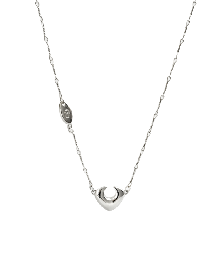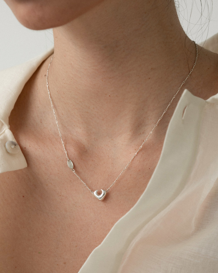 실버를 꼬아 일일히 연결한 매듭 형태의 수입 체인으로 키치하면서도 희소성있는 라인감을 살린 네크리스입니다. SS24 컬렉션의 시그니처 펜던트를 아주 작은 크기로 매치하여 미니멀하면서도 은은한 아름다움을 연출하였으며, 브랜드의 로고를 새겨진 참이 한번 더 포인트가 되어줍니다.