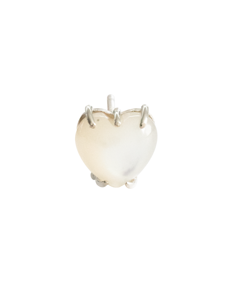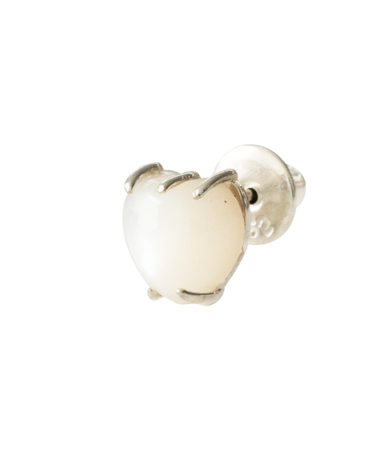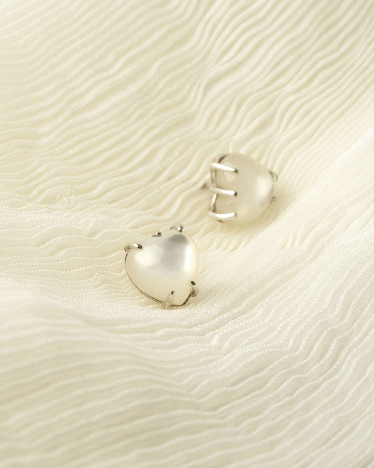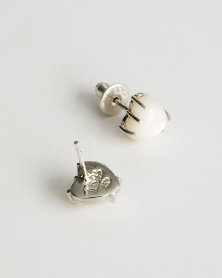 완벽한 하트의 형상은 아니지만 자세히 볼수록 사랑이 눈에 익는 듯한 디자인의 이어링입니다. 자연에 존재하는 마테리얼을 난집, 난발 형식으로 백자개석을 감싸는 형상으로 제작되었습니다. 귀에 착 달라붙는 형태와 작은 크기감으로 실버 자체의 존재감과 더불어, 빛이 닿는 모습에 따라 자개의 오묘한 빛들이 비치는 화이트 컬러로 사랑스러운 포인트로 착용이 가능합니다. 이어링의 뒷 쪽면에 브랜드 로고가 새겨져 있으며, 모든 부분 정은, 천연 백자개로 제작되었습니다. 주문 후 2주의 제작기간이 소요됩니다.